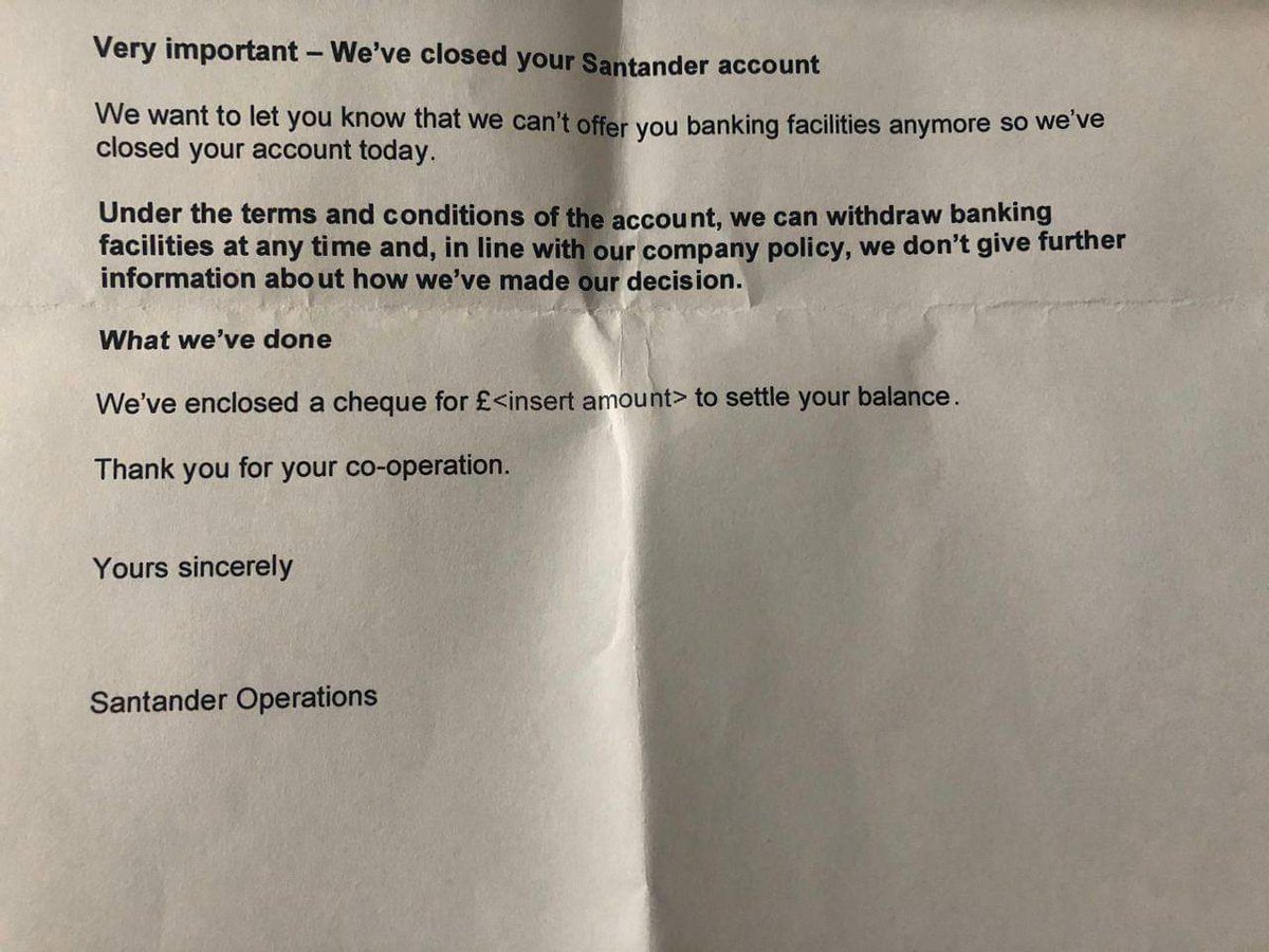 #Loomer, a Jewish woman who is running for Congress in Fla in Trump's District just received this letter from the Santander bank, telling her that her account has been closed. pic.twitter.com/95MXmuvuqD
