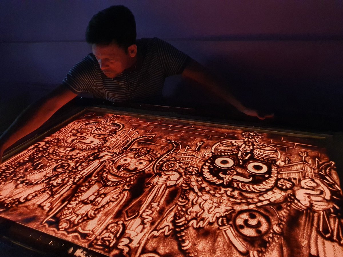 #sand#art , on the occasion of#Lord#Jagannath'#nagarjuna besha at#Puri#Odishapic.twitter.com/jl61SWyzmP