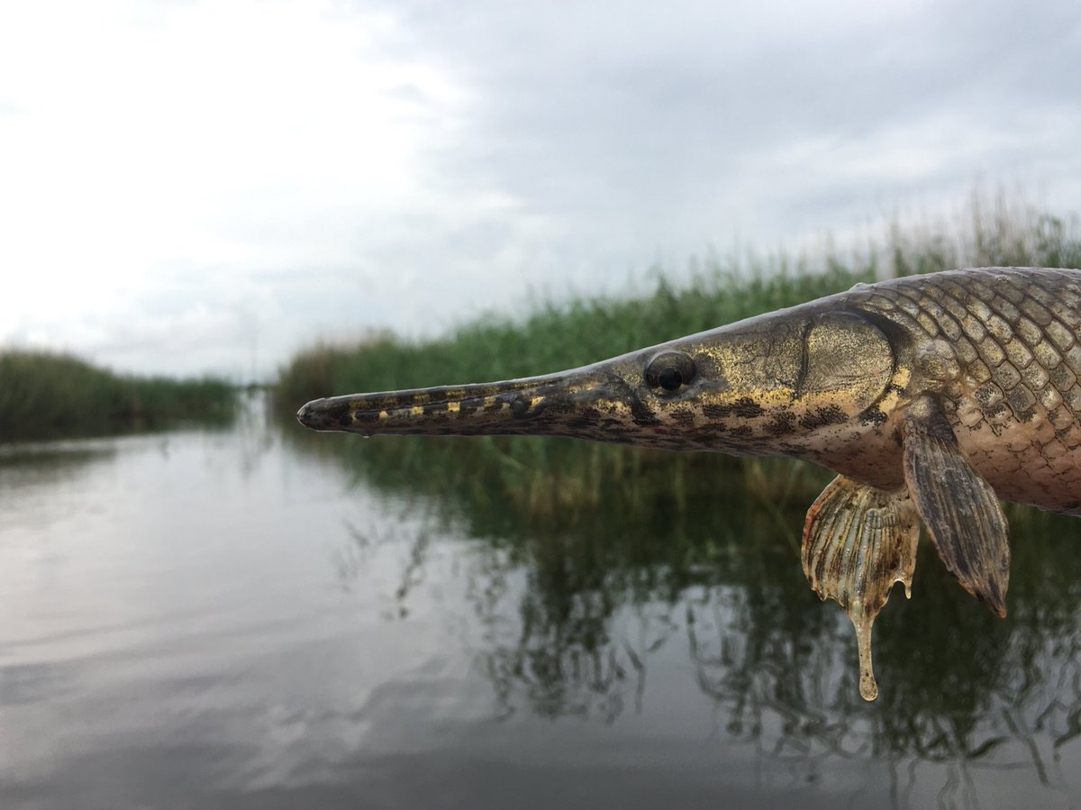 It’s the slime for me. Spotted Gar over the marsh. Released.