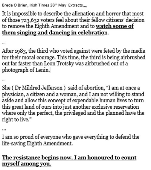 “The resistance begins now. I am honoured to count myself among you.” Breda O’Brien see t https://bit.ly/2L21XrC PS: AGREE COMPLETELY.