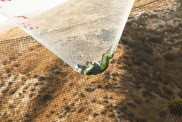 #LukeAikins becomes first skydiver to successfully jump without a parachute, landing in a net in California: AP pic.twitter.com/jFjxBYXUut