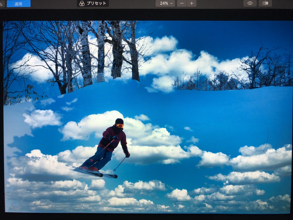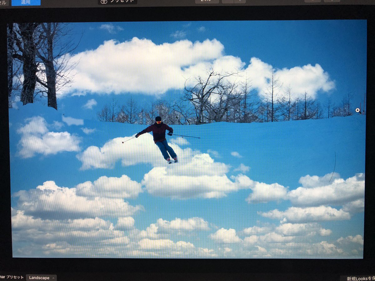 昨日のスキー撮影 曇り空だったからルミナー4の力を借りて空を入れ替えたかったけどさすがに厳しいみたい!!(知ってた) どうにかこうにかすれば境界線認識してくれたりするのかな??