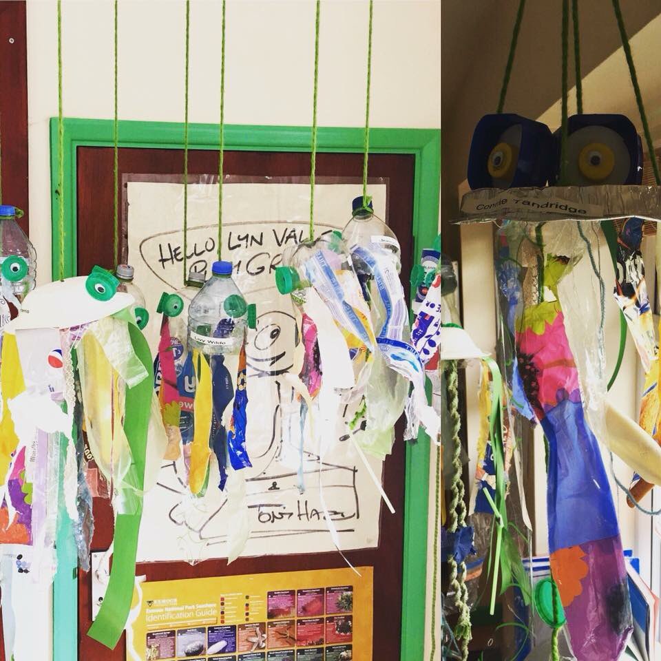 The children at the pre school where I work made these jelly fish to highlight the use of single use plastic and the pollution in the sea. They shall be on display today at