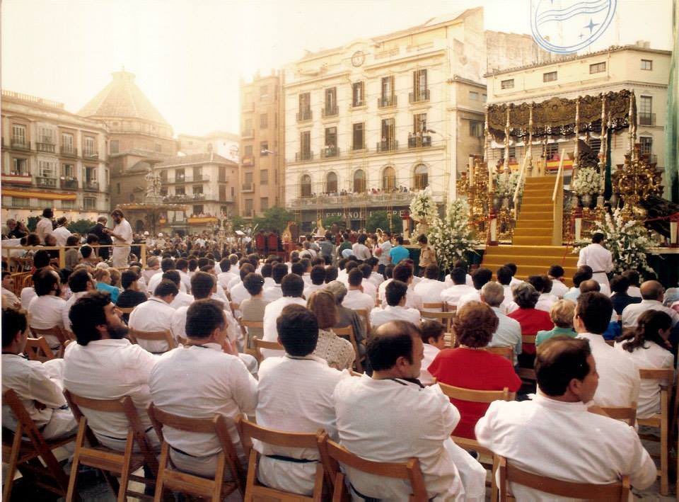#XXXIIICoronada] La ceremonia de Coronación tiene lugar el 18 de junio de 1988, día de los santos patronos de la ciudad de#Málaga san Ciriaco y santa Paula, en una abarrotada Plaza de la Constitución y oficiada por el nuncio de Su Santidad en España monseñor Mario Tagliaferri. pic.twitter.com/cxsO8QceQL