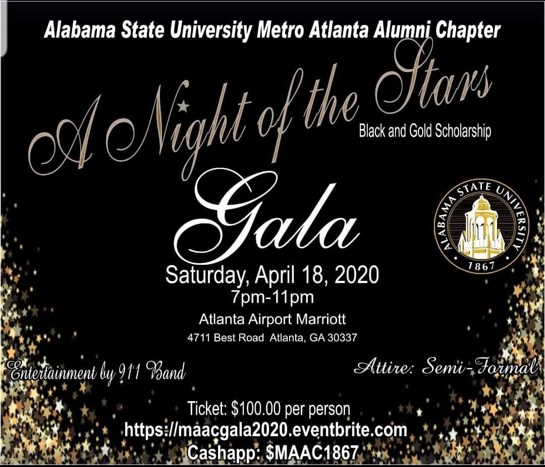ASU Metro Atlanta Alumni is excited to host its Annual Scholarship Fundraiser! April 18, 7 pm-11 pm Ticket: $100 Attire: Semi-Formal, Special performances and Guest. IT'S A NIGHT OF THE STARS EVENT!