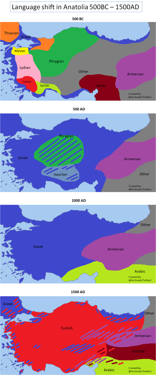 #Anatolia between 500BC – 1500 AD#maps https://wedaneus.home.blog/2019/08/02/approximate-language-identity-shift-in-anatolia-between-500bc-1500-ad/ …pic.twitter.com/mQ26xHS1b4