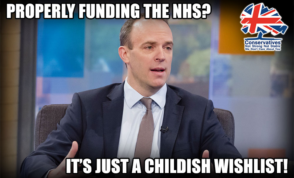 Dominic Raab is dangerous. He sees the NHS as unsustainable & its funding as a 'childish wishlist'. The NHS is too important and essential to the UK to let ideological idiots like this be anywhere near positions of power where they could damage it irrevocably!