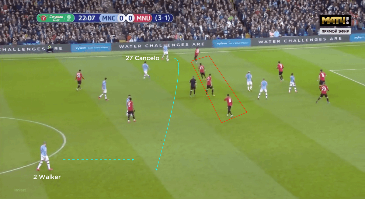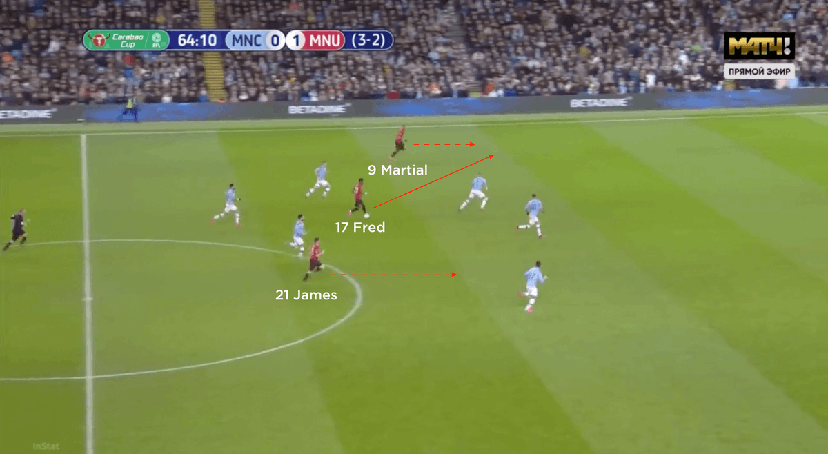 Their midfield regularly offered four-on-three overloads against Manchester United’s, which contributed to the ease with which they advanced beyond it, or created spaces elsewhere. #MCIMUN#MCFCpic.twitter.com/yrXHmGjZwb