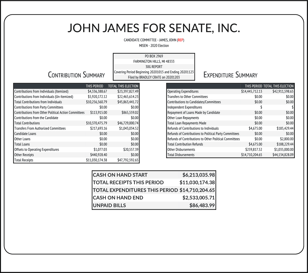 #MISen https://www.mlive.com/politics/2020/12/john-james-raised-2m-after-election-loss-collecting-donations-for-challenging-results.html … -