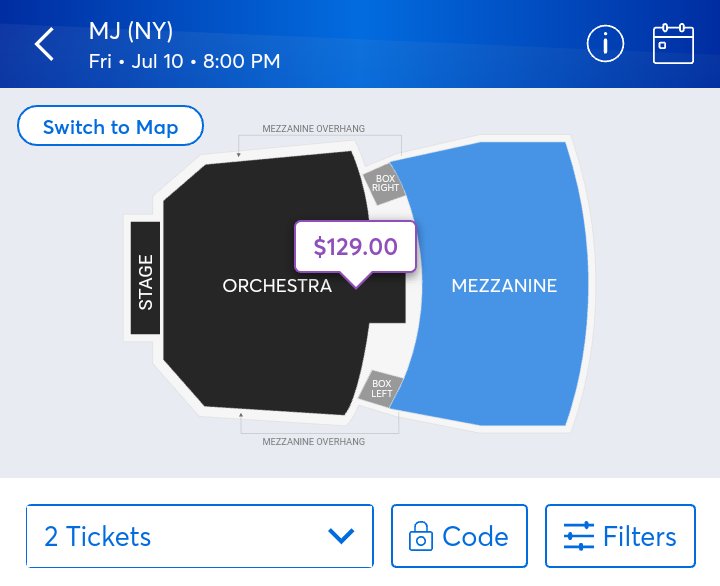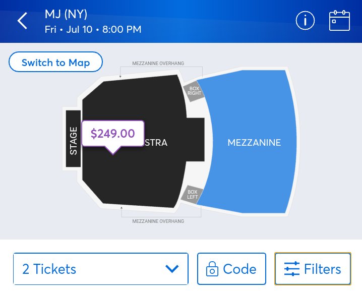 #MJtheMusical on Broadway has pre-sale tickets available for#MJFam using the discount code "MJFAN3" (all caps) - The prices vary. Mezzanine/Balcony is $59 ea. - Orchestra/Floor is $129 ea. (back rows) & $199 ea. (middle & front rows). *See Below*