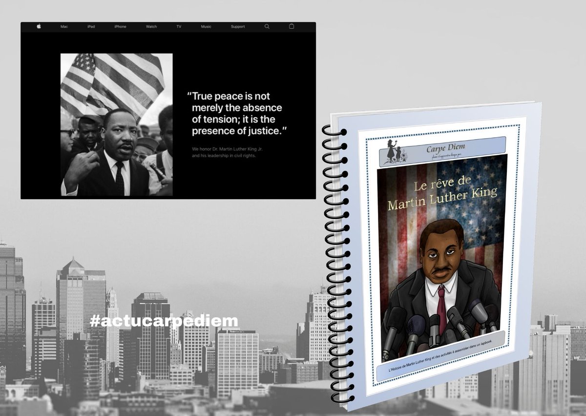 , @Apple a remplacé ses promotions par une photo noir et blanc de Martin Luther King avec une citation « La vraie paix n’est pas simplement l’absence de tension ; c’est la présence de la justice. »#lapbook MLK https://bit.ly/2RXKhmt pic.twitter.com/iu0xng34jJ