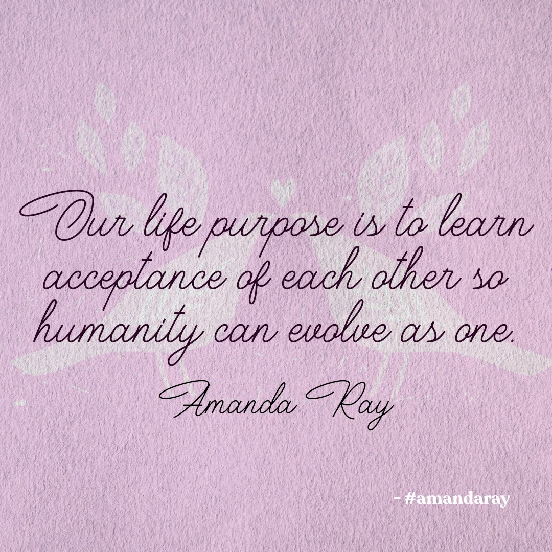 Our life purpose is to learn acceptance of each other so humanity can evolve as one.