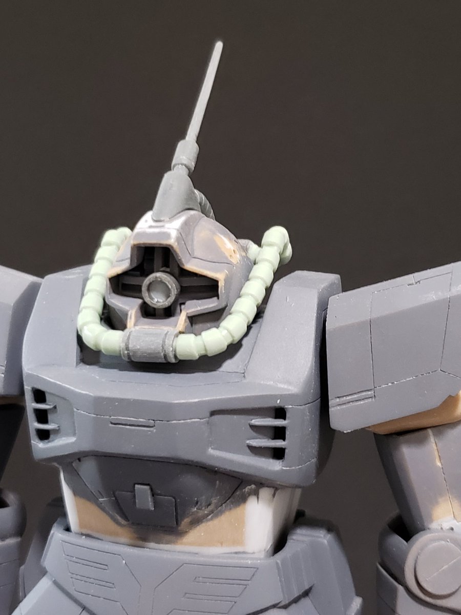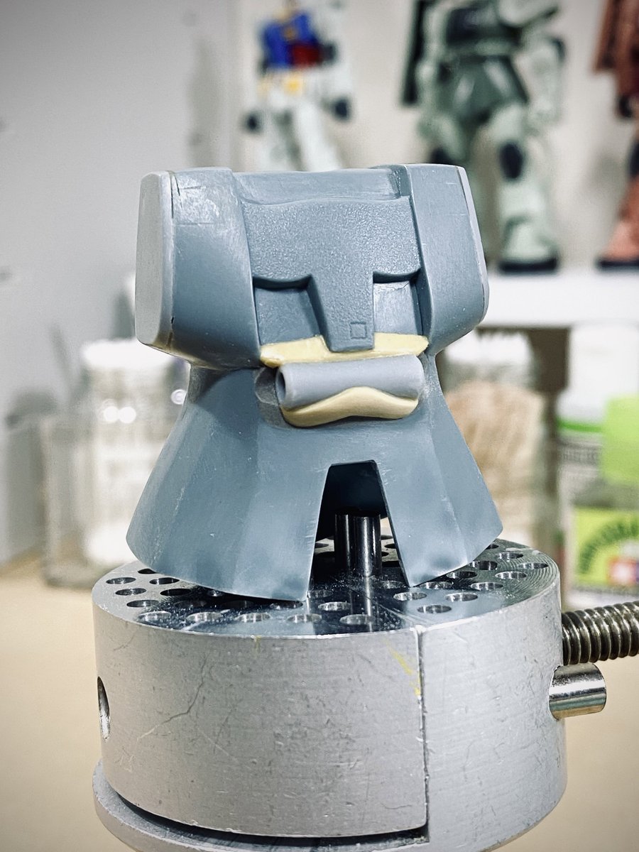 #MSV#gunpra#旧キット 頭部動力パイプ、何か太すぎて気に入らず、HGザクのジャンクパーツでやり直し。こんなんだからいつまでも完成しない。pic.twitter.com/YsfKUGwSX9