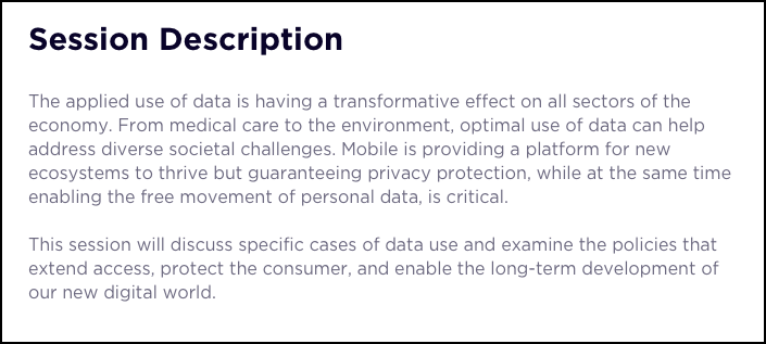 #MWC2020 'Leveraging AI to Provide Solutions at the Edge while maintaining Privacy and Trust' https://www.mwcbarcelona.com/session/leveraging-ai-to-provide-solutions-at-the-edge-while-maintaining-privacy-and-trust/ … <no data protection/privacy experts speaking? -
