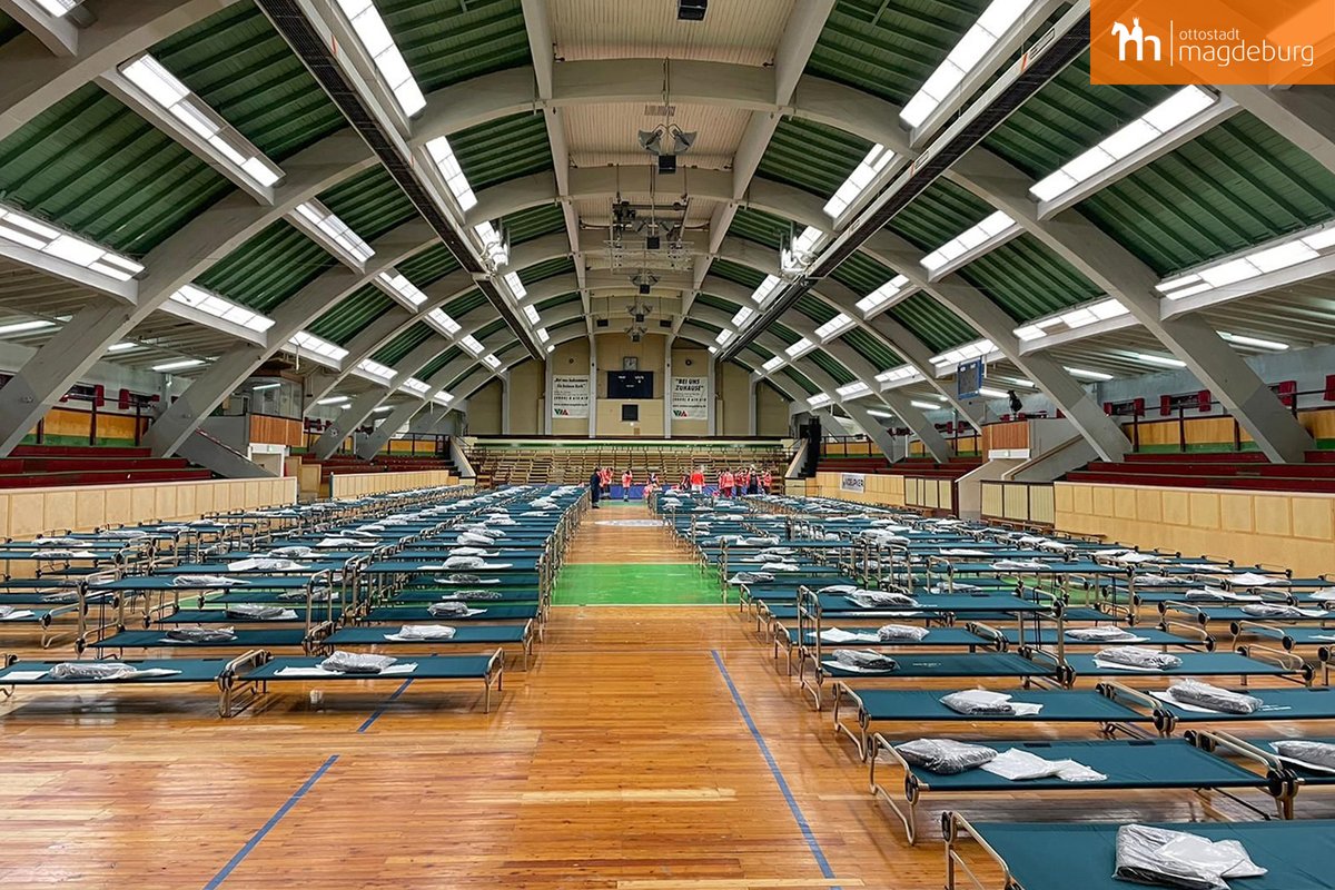 #Magdeburg ist die Hilfe für Geflüchtete aus der#Ukraine angelaufen. In der Hermann-Gieseler-Halle wird allen ein Obdach angeboten, die nicht bei Bekannten/Verwandten unterkommen können. Für das Engagement der Bevölkerung dankt die Stadtverwaltung!