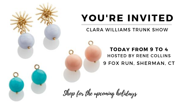 @ClaraWilliamsco Trunk Show today from 10 to 4 hosted by Renee Collins. Clara Williams designs beautifully crafted jewelry with a fine disposition and a magnetic personality.