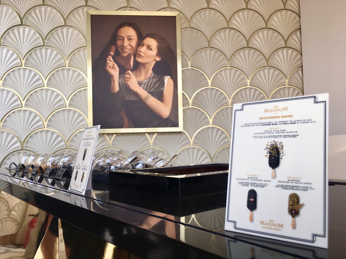 #Cannes2018 Nous dégustons ces délicieux magnums créés par#AlexanderWang et#BellaHadid en direct de la#PlageMagnum, en attendant la conférence de presse !#MagnumCannes pic.twitter.com/Xg0RYtGTwo