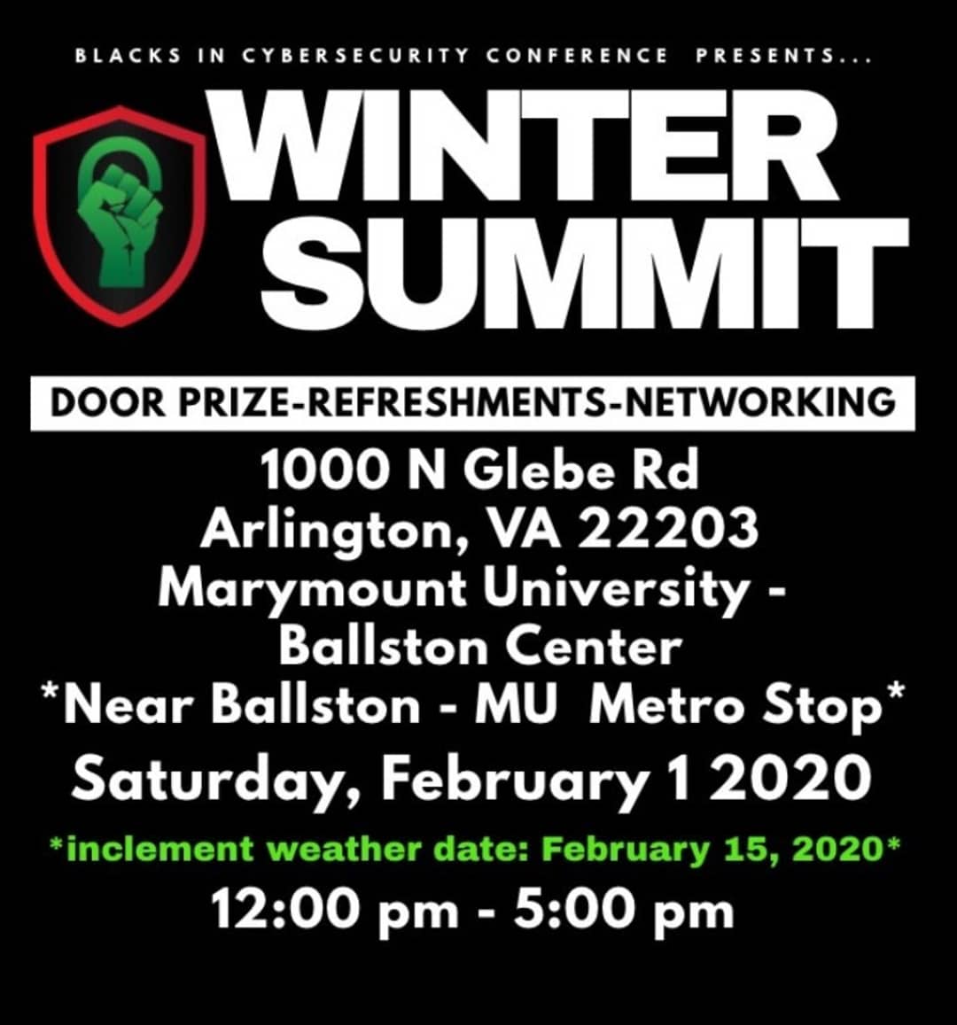 @BlackInCyberCo1#BICWinterSummit2020 today. Hope to see you there.