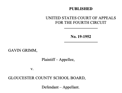 #NewTitleIX#MajorCase 4CA affirms the USDCT/EDVA SummJ ruling that Gloucester SchBd illegally discriminated against@GavinGrimmVA with bathroom & records policy as it holds that Constitutional Equal Protection &#TitleIX protect#transgender students. Ct. cites#Bostock.#EdLawpic.twitter.com/1wqqWcafVI