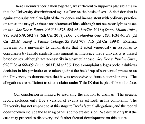 #NewTitleIX#MajorCase CA8 reverses lower ct's MTD & allows graduated student's#TitleIX claim to proceed against the@UArkansas as CA8 adopts the 7/3/9CA's Plausible Inference standard relying on 2/6CA's T9 Erroneous Outcome factors.#TitleIXCircuitSplit#EdLawpic.twitter.com/dwr1utZrQO