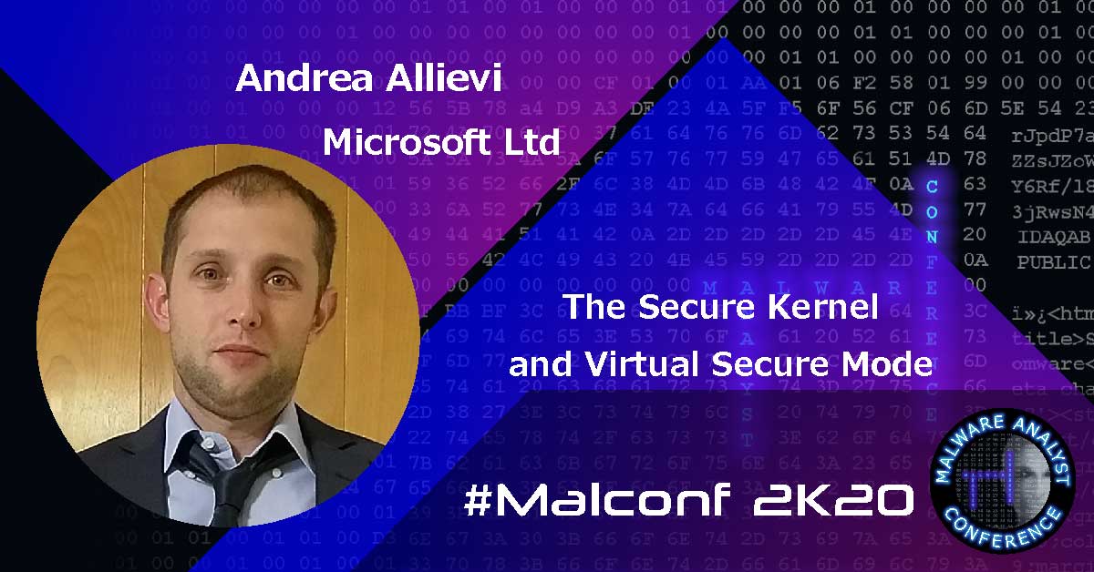 @aall86 with the talk: "The Secure Kernel and Virtual Secure Mode". https://www.malwareanalystconference.com/eng/talk.html#t3 …#MalConf#MalConf2K20pic.twitter.com/8H4OydcZce