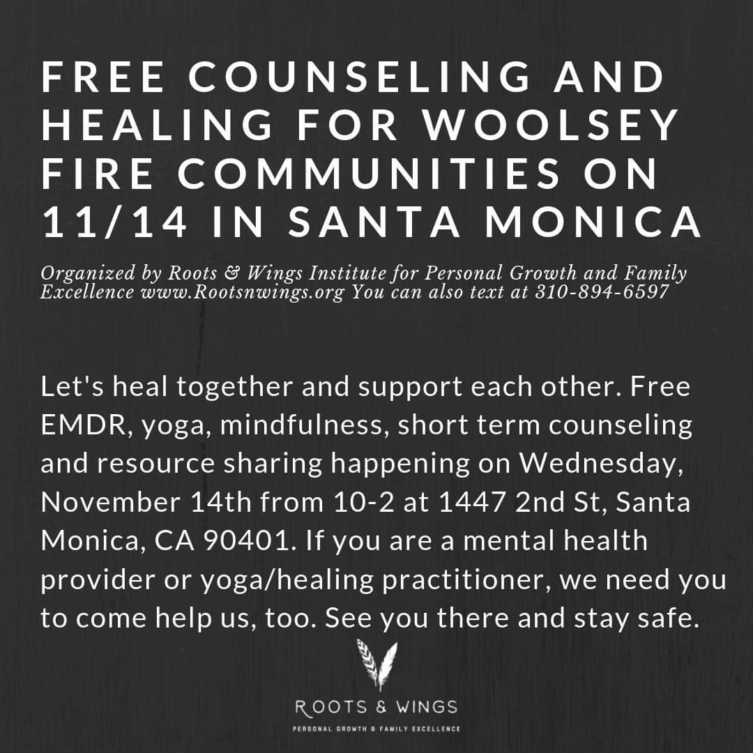 #MalibuFire#WoolseyFire we are doing free counseling & healing@ScienceInc offices Wednesday 10am-2pm.@DrJenniferJones thank you. If you can help or need help please come.pic.twitter.com/4Nf5topzQK