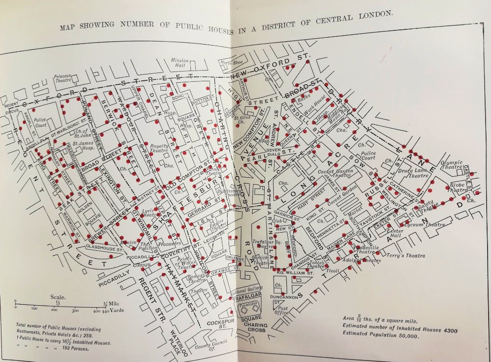 Map showing number of public houses around Oxford Street, London, from 'The Temperance Problem' (1899)