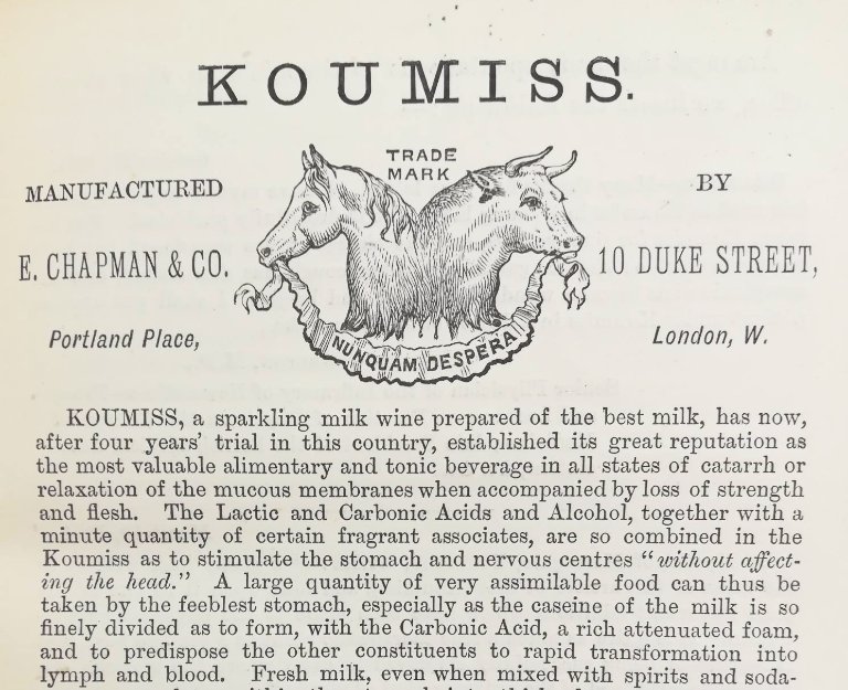 Koumiss, appetisingly described as "sparkling milk wine" here, became a fashionable cure-all in the late c19th. Russian greats Tolstoy and Chekhov were fans