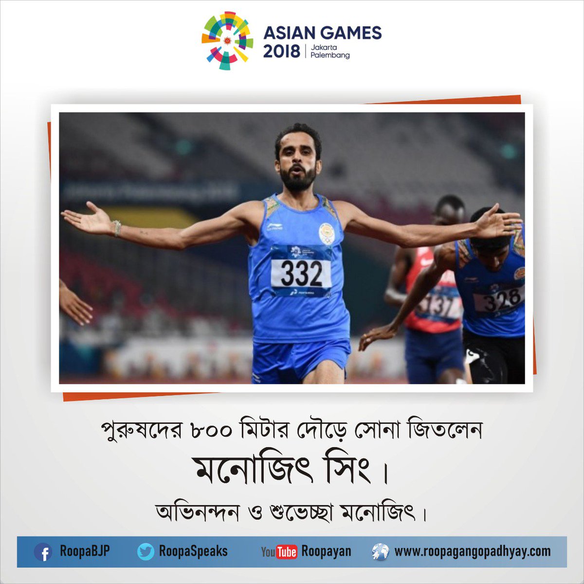 in men's #800m. Stupendous! You have brought such glory to the Nation. Heartiest congratulations !#AsianGames#AsianGames2018#IndiaAtAsianGamespic.twitter.com/gvG78BJNRs