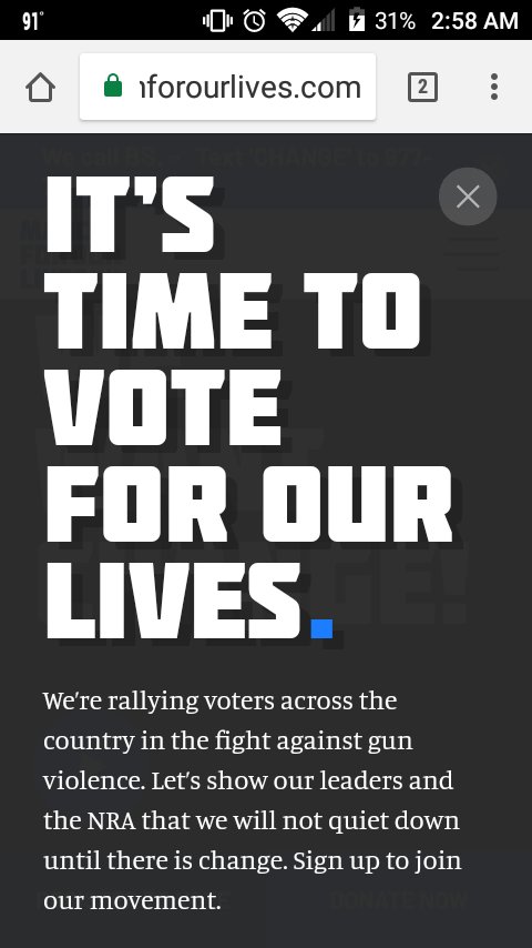 Register to vote at https://marchforourlives.com/vote-for-our-lives/ … to make a difference on a local, state, and federal level. It takes less than 2 minutes!!!