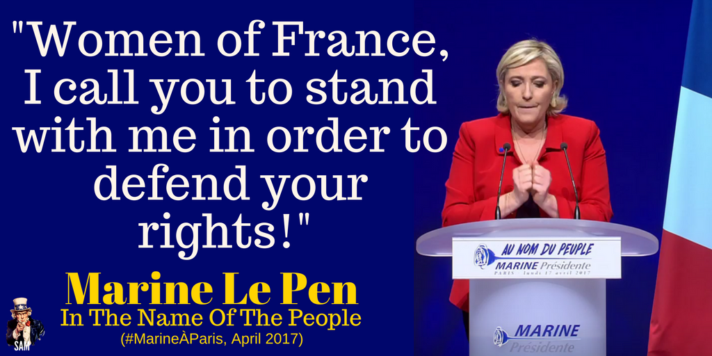 Marine Le Pen: "Women of France, I call you to stand with me in order to defend your rights!"