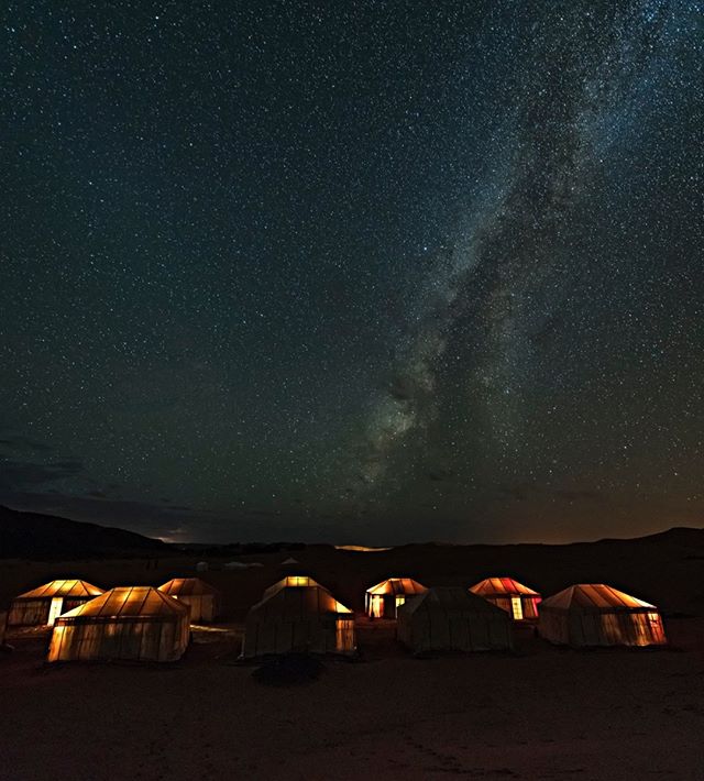 #Maroc : passer une nuit en bivouac dans le désert près de Merzouga pour goûter au mode de vie des berbères nomades et admirer le ciel étoilé une fois la nuit tombée...