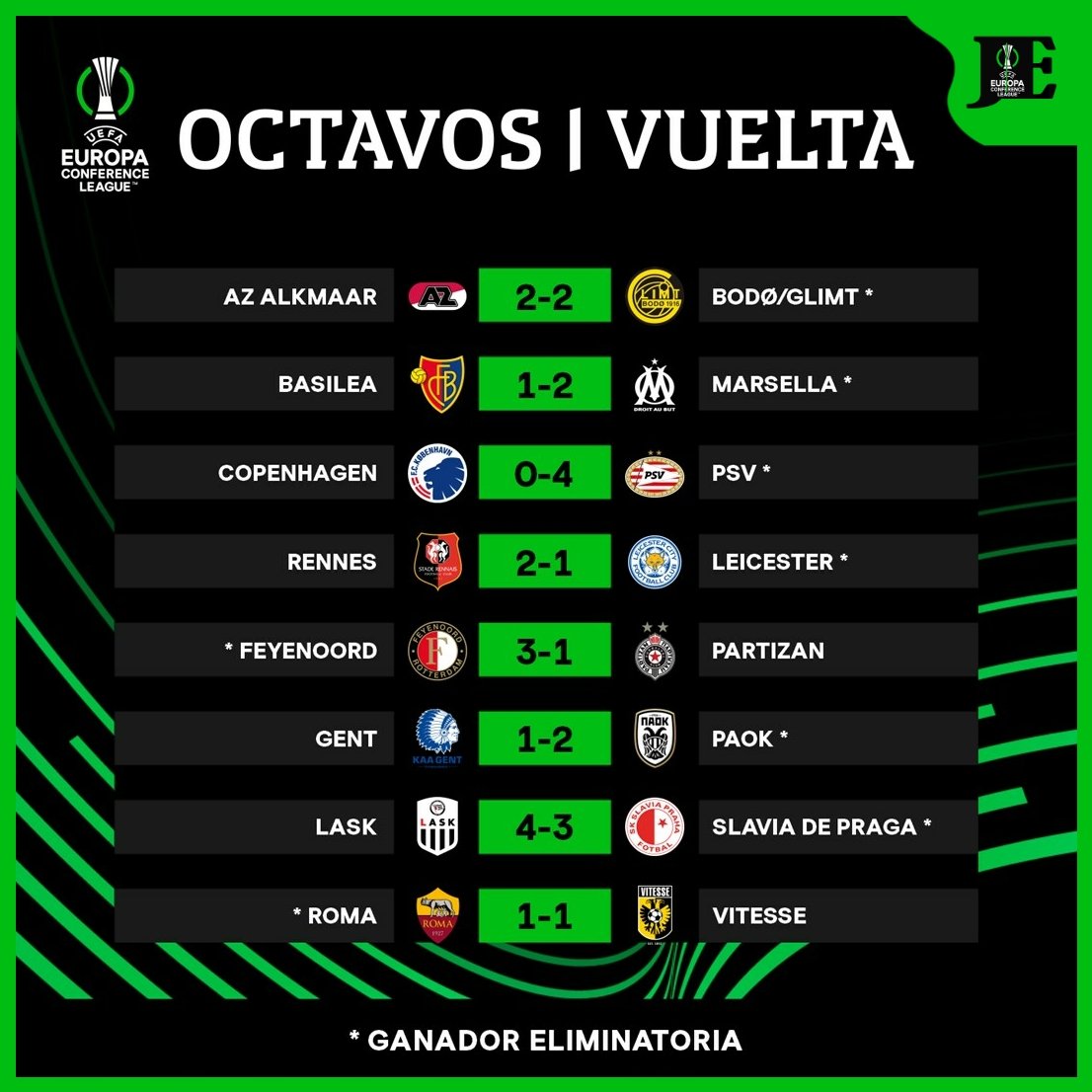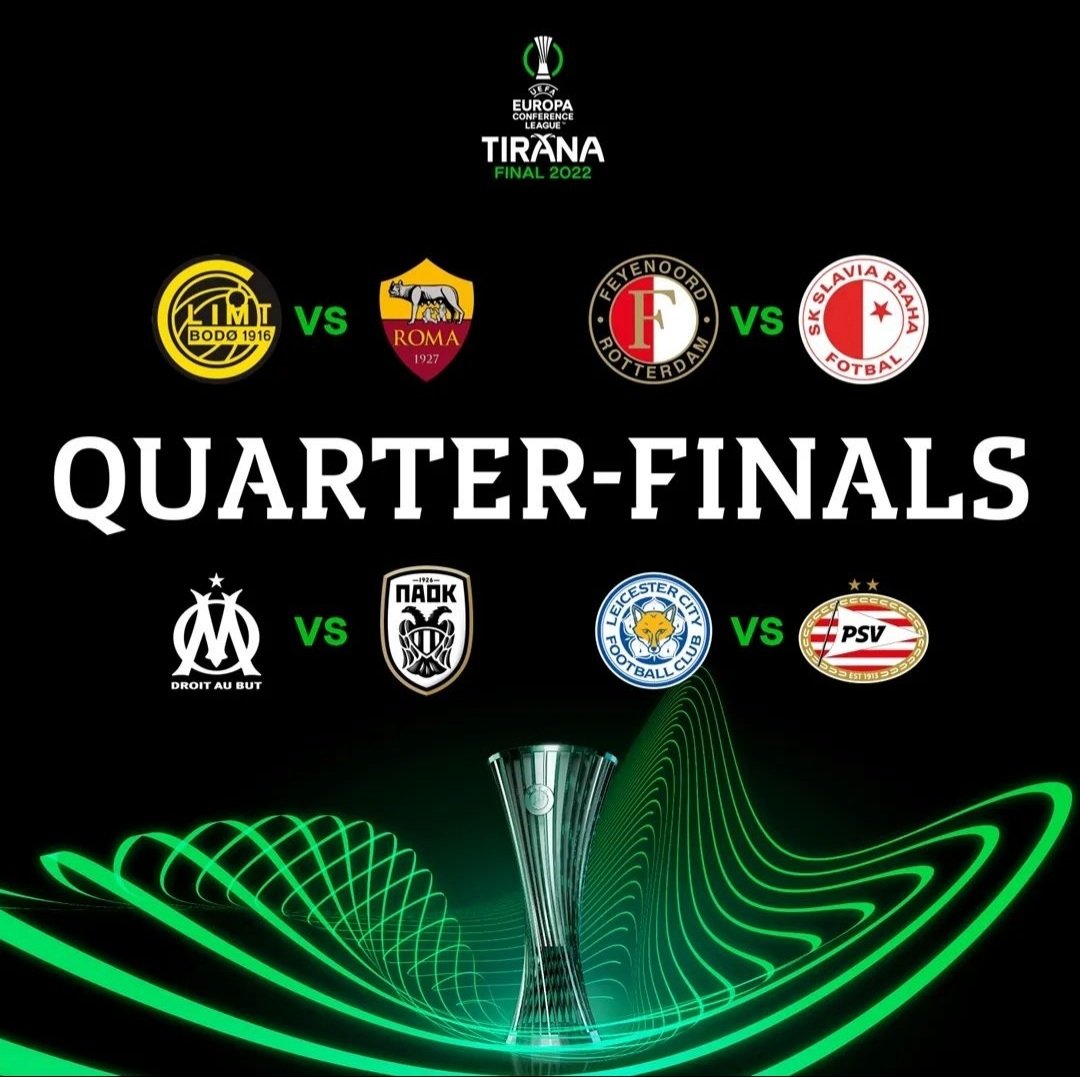 #Leicester,#PSV,#Marsella,#Roma, Slavia Praga, Paok y#Feyenoord son equipos que se meten entre los mejores 8 de la primera edición de#ConferenceLeague Feyenoord, Slavia Praga, Marsella y PSV golearon en el global de manera contundente.#UECL
