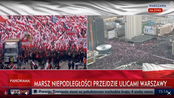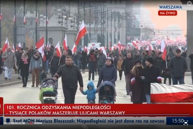 #Independence#March in#Warsaw#Poland set off minutes ago. Crowds with red and white flags march through city centre.#MarszNiepodległości2019#IndependenceDayhttps://twitter.com/tvp_info/status/1193900258343866368 … -