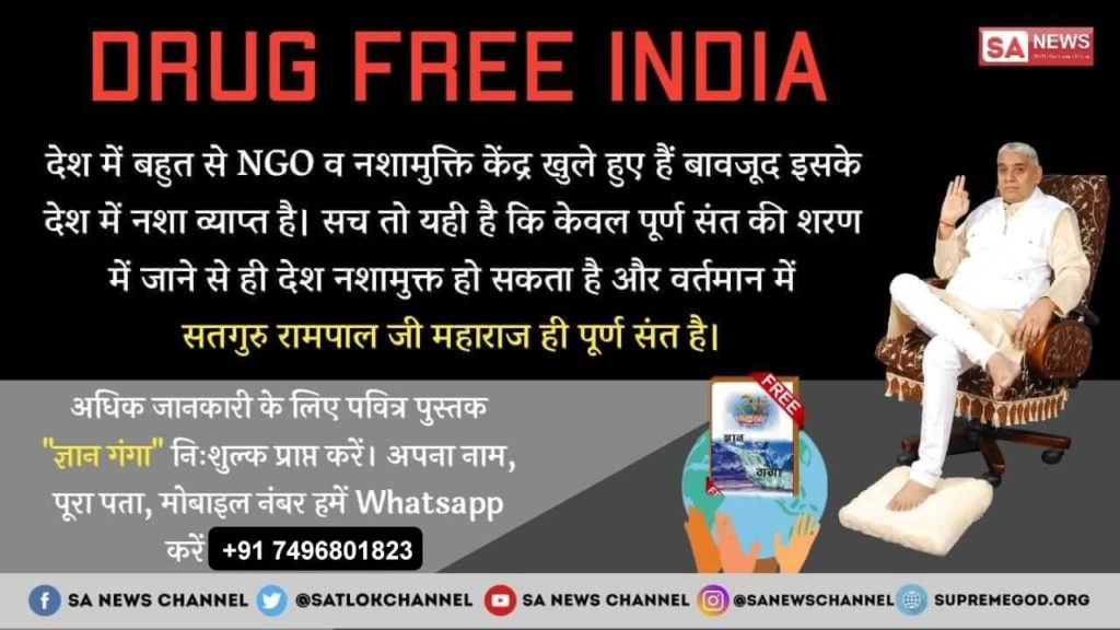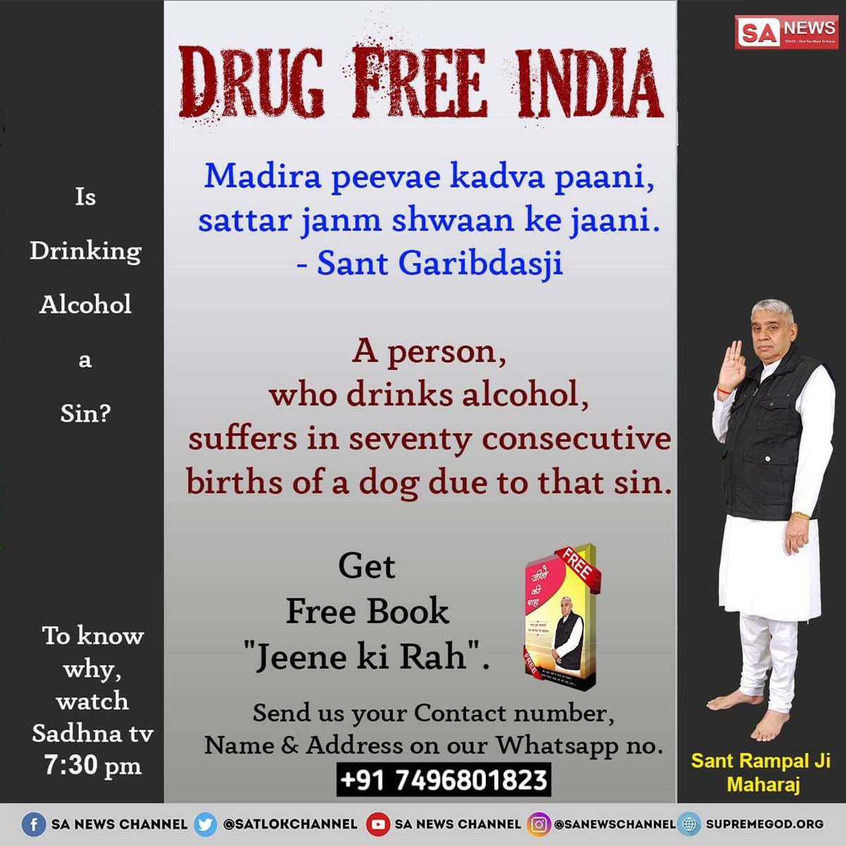 #DrugFree_NewIndia A person who drinks alcohol, suffers in seventy consecutive births of a dog due to that sin. Saint Rampal ji Maharaj#MartyrsDay pic.twitter.com/Zjcmhg9Jv0