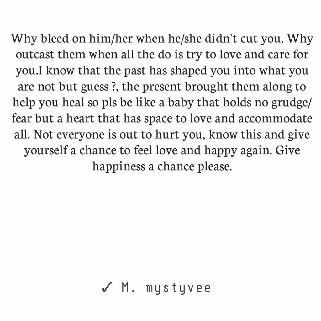 Stop bleeding on who didn't cut you. Give yourself chance to feel loved.