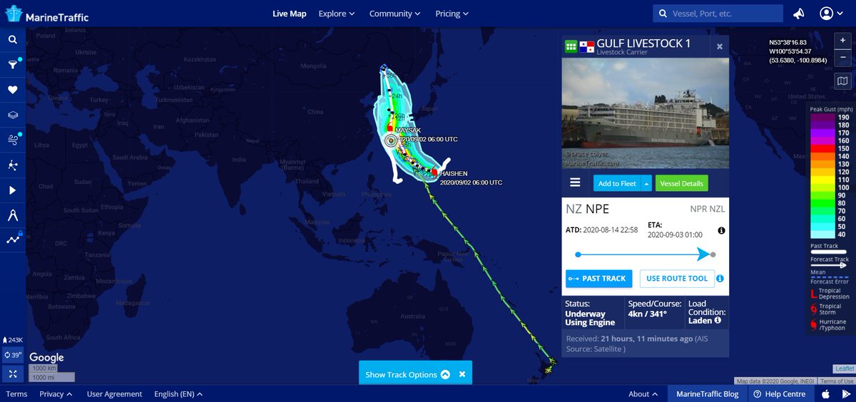 Livestock carrier goes missing in the East China Sea The GULF LIVESTOCK 1 has disappeared, probably hit by high waves & strong winds caused by typhoon