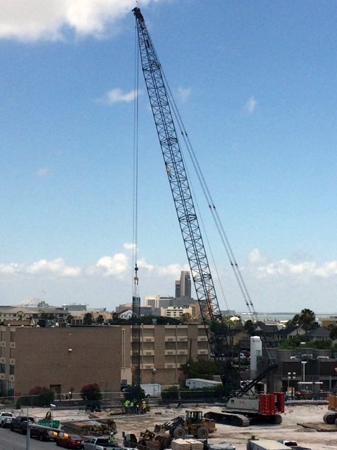Check out our crane setting the 140' rebar cage for the 1st concrete pier pour at