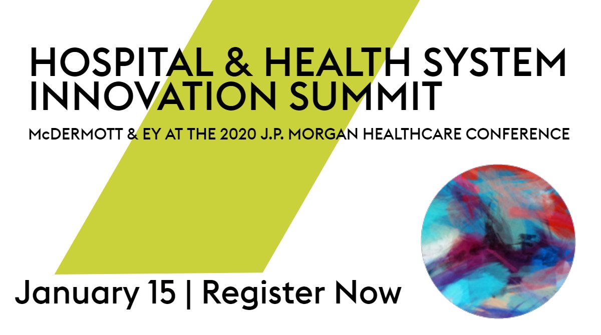 @ChrismarkCOBURN speak at the Hospital & Health System Innovation Summit today at 9:45am (PST) about the evolution of hospital & health system innovation centers. See you there!#McDermottLiveFromJPM#JP2020https://twitter.com/McDermottLaw/status/1215679983559028743 …