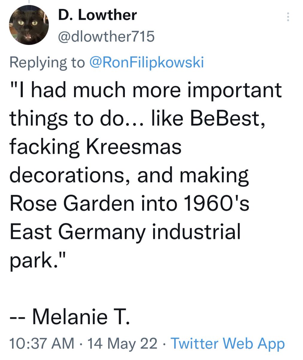 #JillBiden to change#Melania#tRrump's embarrassing#rosegarden renovation into something featuring a sunflower display. All in favor say "aye". https://twitter.com/mfstern/status/1525493623990673414 …pic.twitter.com/LquzL6PzFs