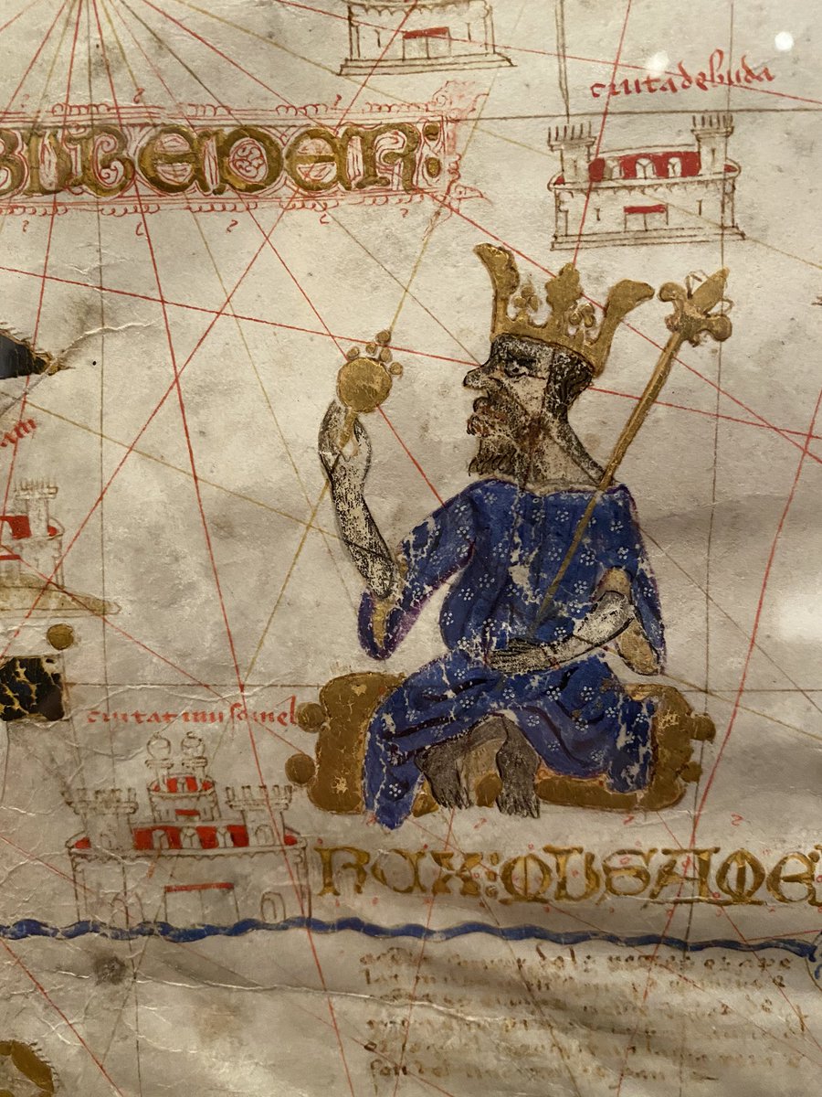 @YaelleBiro présente la carte marine du XVe siècle prêtée par@laBnF, sur laquelle figure le roi Mansa Musa (on notera également que la mer rouge est représentée... en rouge, et que la Corse a une forme étrange !)#MetSahel pic.twitter.com/ORzjukiRFu