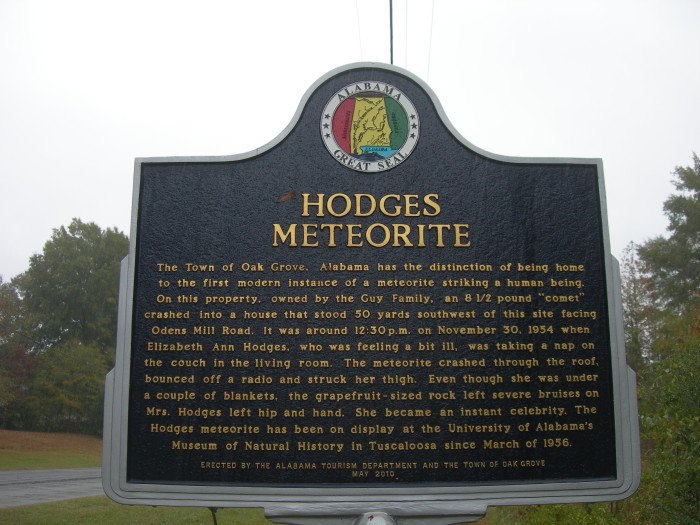 #DYK?#Alabama is the location of the first and only meteorite to hit a human. The woman, Ann Hodges, survived and the#meteorite can be seen in our local museum. pic.twitter.com/HXsAcwQ44d