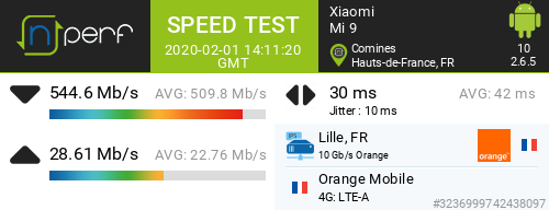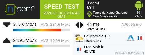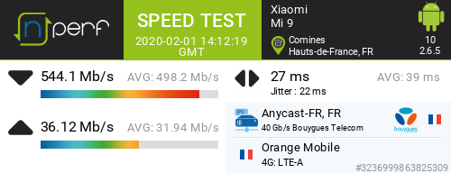 #Mi9 /#nPerf v2.6.5 / pas besoin d'aller en Suède pour trouver du débit#freepic.twitter.com/y4So9Inh4L