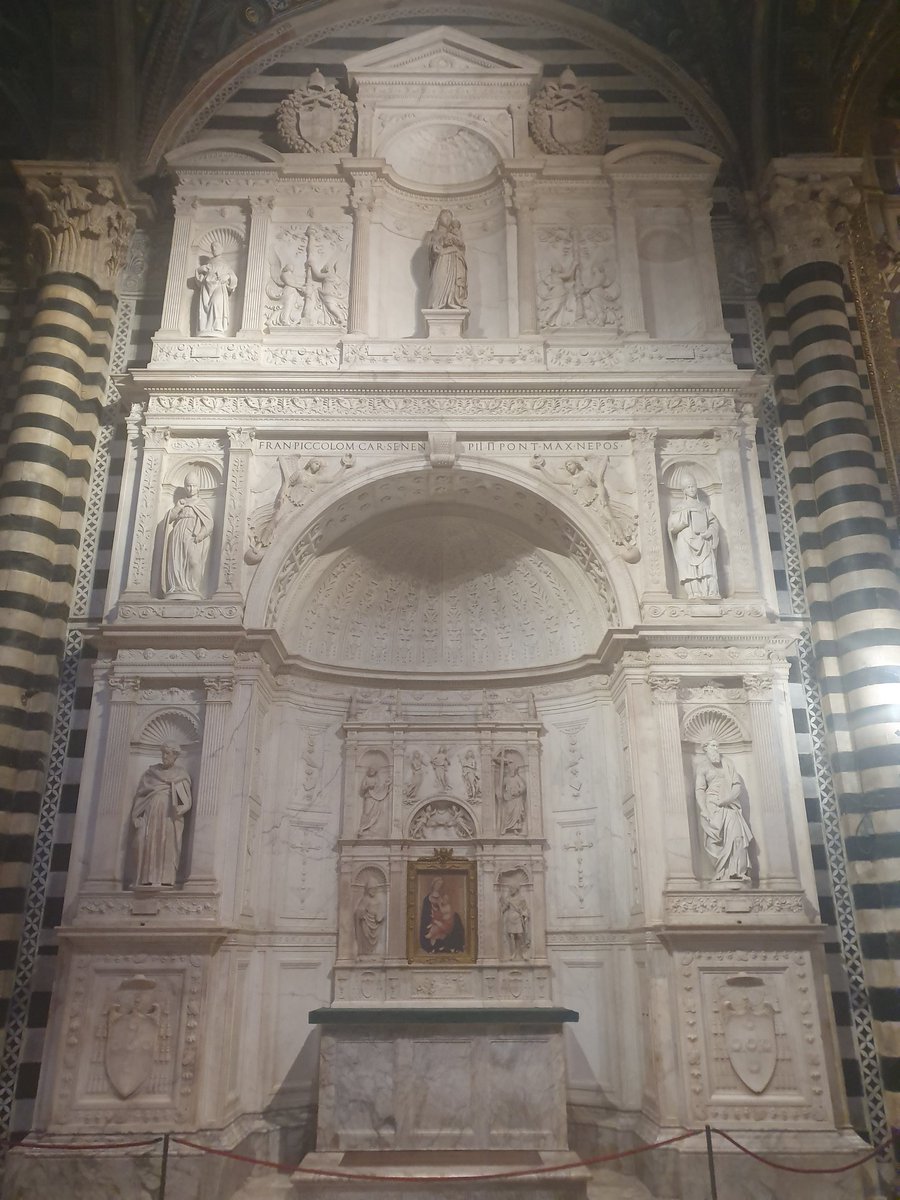 The four sculptures in the Piccolomini Altarpiece, representing St. Augustin, St. Gregorius, St. Paul and St. Peter, were made by a young