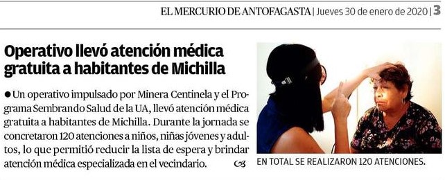 #Michilla, gracias al trabajo conjunto de#MineraCentinela y el Programa Sembrando Salud de la@udeantofagasta