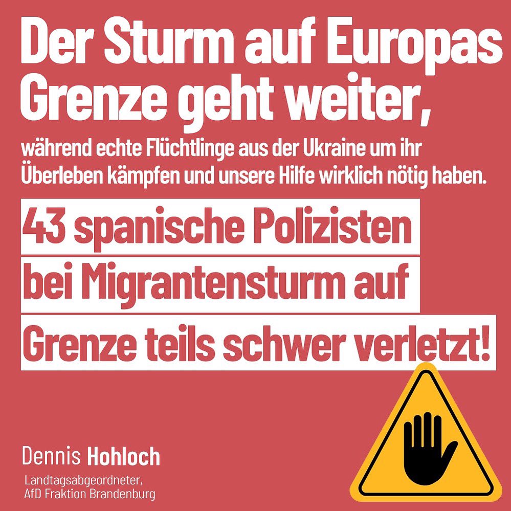 #Kinder und#Frauen unsere Hilfe dringend benötigen, missbrauchen#illegale#Migranten aus Nordafrika das#Asyl und greifen abermals die spanische#Grenze an. Resultat: 43 verletzte Polizisten und 841 Grenzübertritte. Schützt endlich unsere Grenzen!pic.twitter.com/nVaMxPxoYt