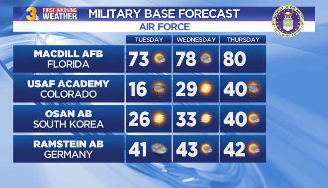 Check out the weather at the Air Force Bases