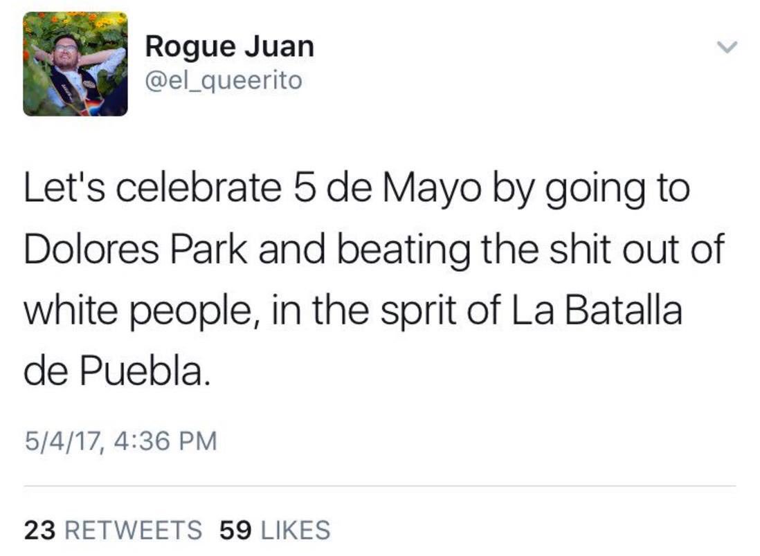 #AntiFa#Illegal#el_queerito knows how to celebrate Cinco de Mayo#MiloAtCal#UCBerkeley#KiaraRoblespic.twitter.com/tPxm15KH6P