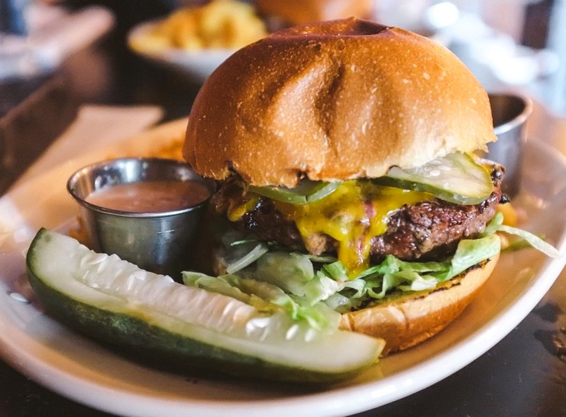 The Rumpus Burger. Half-pound Angus patty on a Sciortino’s bun with lettuce, red onion, pickles, tomato, pub-mayo, and your choice of cheese. (