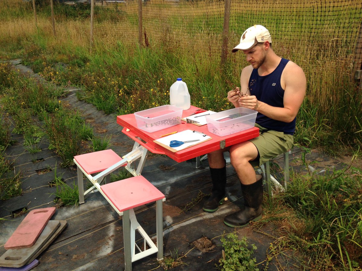 Wrapping up our 3-yr field experiment on Vancouver Island. Feels very bittersweet, but first several thousand fruit to count...